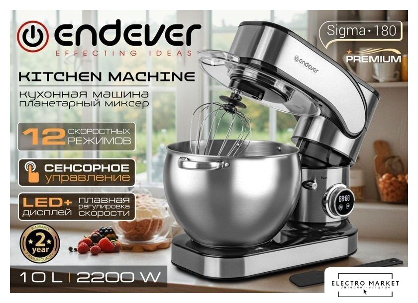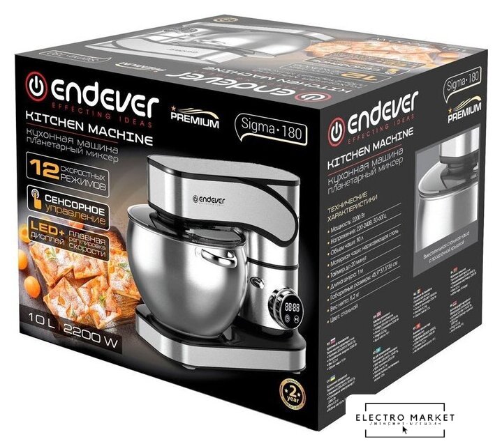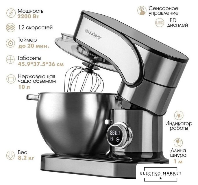 2200 Вт, объем чаши: 5.5 л, мясорубка