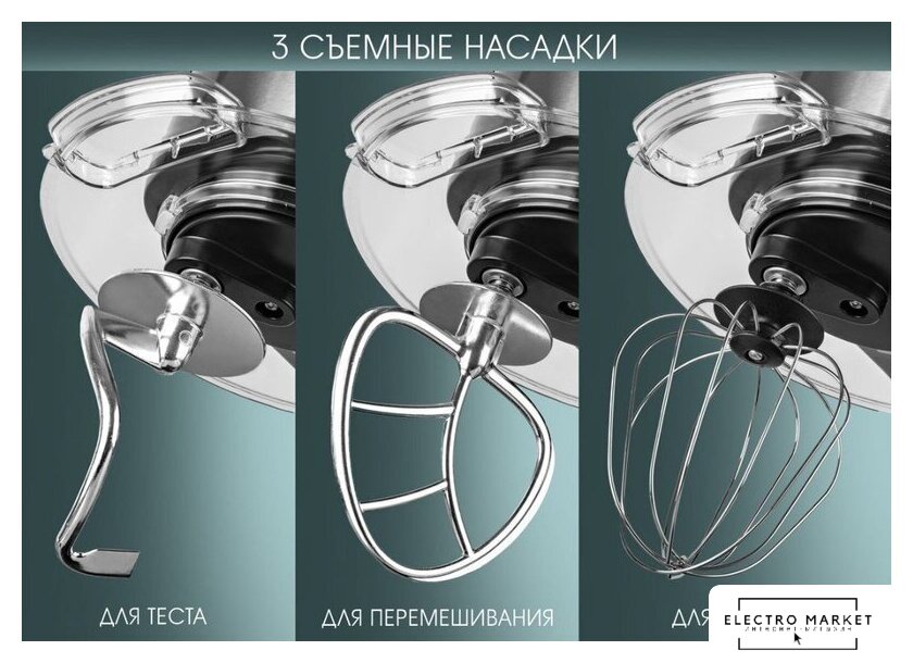 | Функции | взбивание, смешивание, замешивание дрожжевого теста |