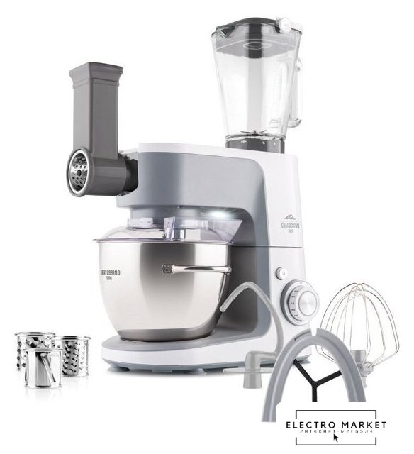 1200 Вт, планетарное смешивание, объем чаши: 5.5 л, терки, мясорубка, блендер