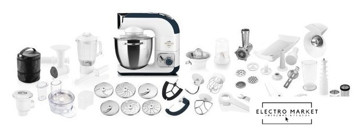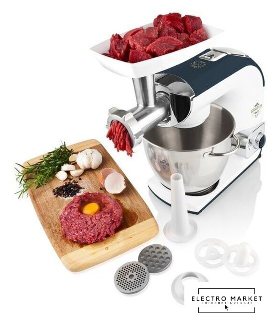 1200 Вт, планетарное смешивание, объем чаши: 7 л, мясорубка, блендер