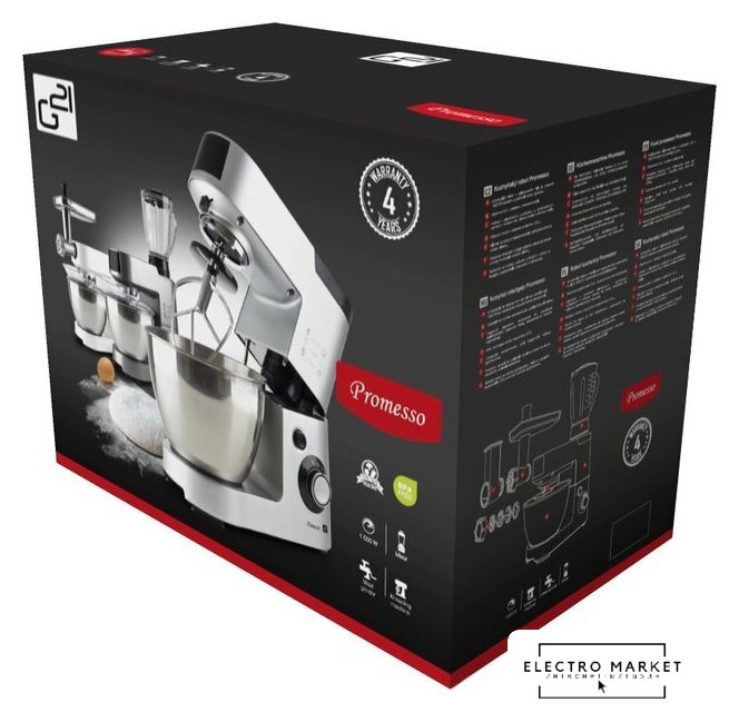 1500 Вт, планетарное смешивание, объем чаши: 6 л, мясорубка