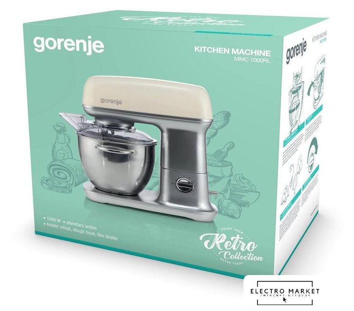 1000 Вт, планетарное смешивание, объем чаши: 4.5 л, мясорубка, блендер