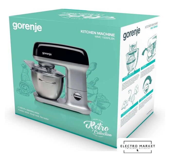 1000 Вт, планетарное смешивание, объем чаши: 4.5 л, мясорубка, блендер