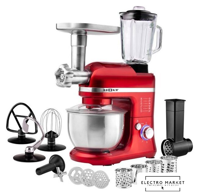 Полная комплектация | Мясорубка c 3 формовочными дисками и насадкой для колбасы;Диск для средней рубки;Диск для крупной рубки;Диск для рубленого мяса;Овощерезка с 4 насадками;Терка крупная;Терка мелкая;Терка для драников;Терка для шинкования;Блендер с чашей из термостойкого стекла и ножом из нержавеющей стали;Насадка для взбивания;Насадка для смешивания;Насадка для замешивания теста |