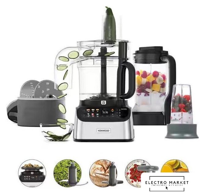 | Функции | блендер, цитрус-пресс, взбивание, смешивание, замешивание дрожжевого теста, измельчитель, рубка, терка, шинковка, ломтерезка, самоочистка |