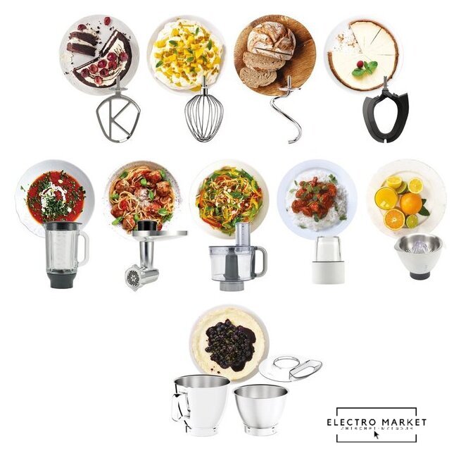 1200 Вт, планетарное смешивание, объем чаши: 7 л, измельчитель, мясорубка, блендер