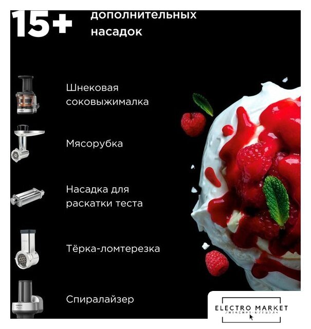 1000 Вт, планетарное смешивание, объем чаши: 4.3 л, терки, измельчитель, соковыжималка, блендер
