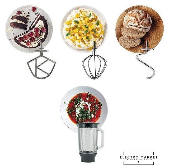 1200 Вт, планетарное смешивание, объем чаши: 5 л, терки, мясорубка, блендер