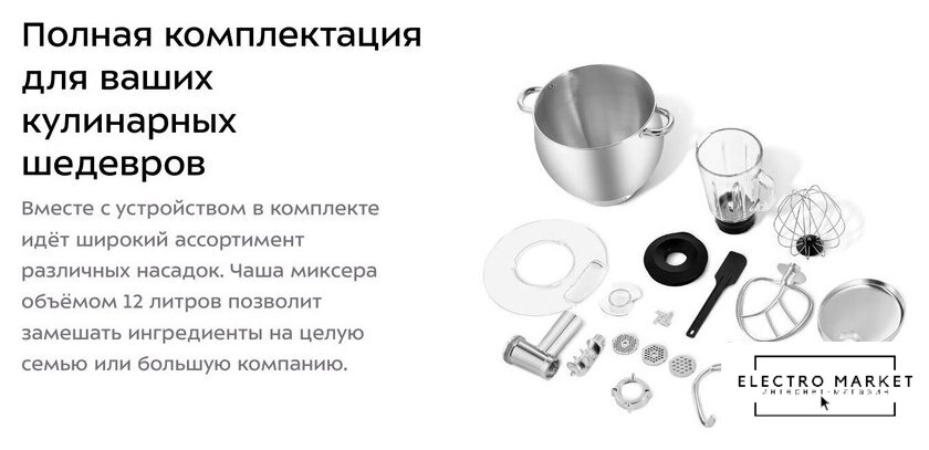2000 Вт, планетарное смешивание, объем чаши: 8 л, мясорубка, блендер