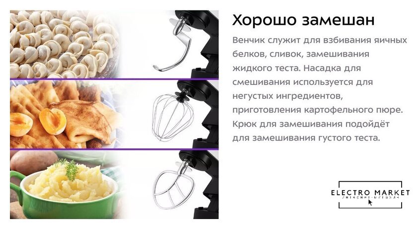 Функции | мясорубка, блендер, взбивание, смешивание, замешивание дрожжевого теста |