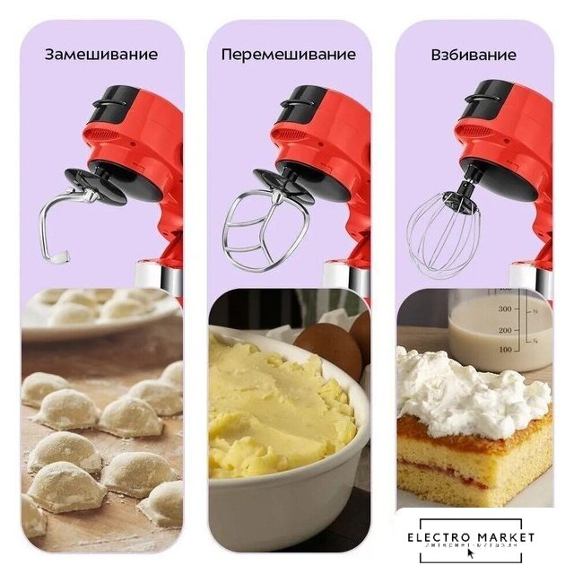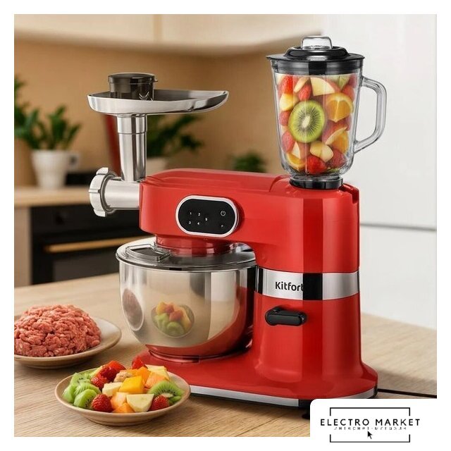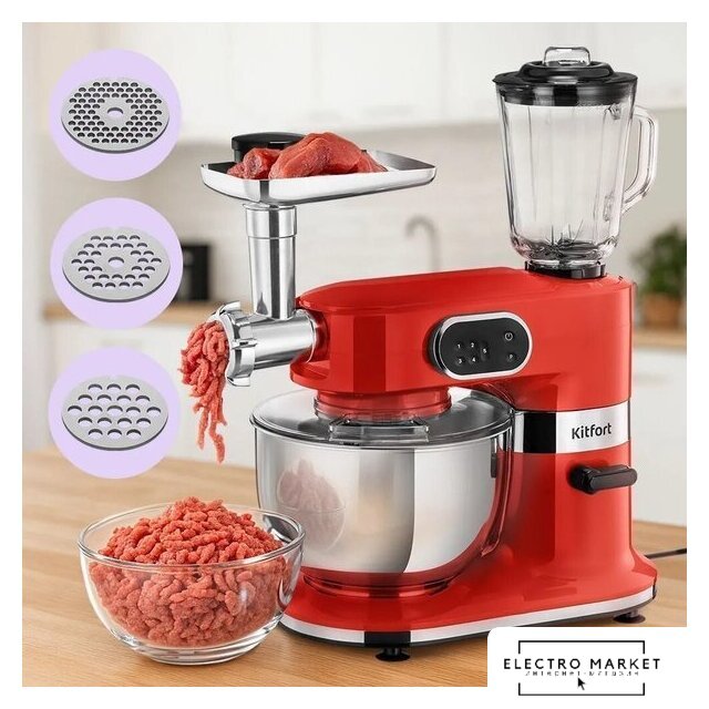 1500 Вт, планетарное смешивание, объем чаши: 6 л, мясорубка