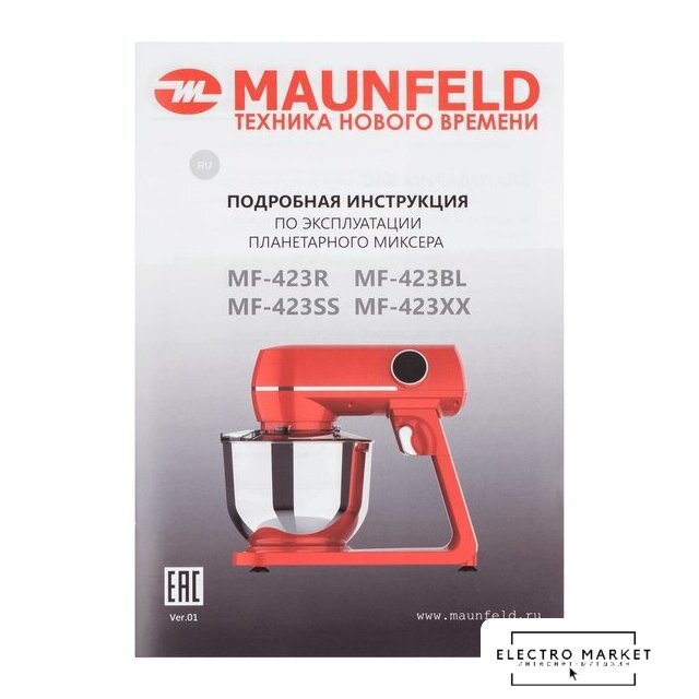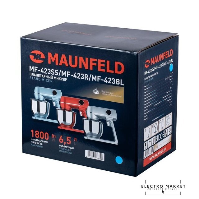 1800 Вт, планетарное смешивание, объем чаши: 6.5 л