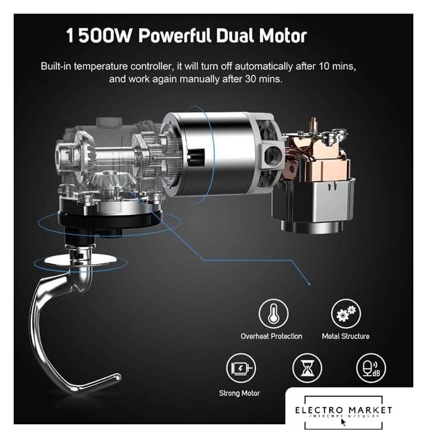 1500 Вт, планетарное смешивание, объем чаши: 5.5 л, блендер