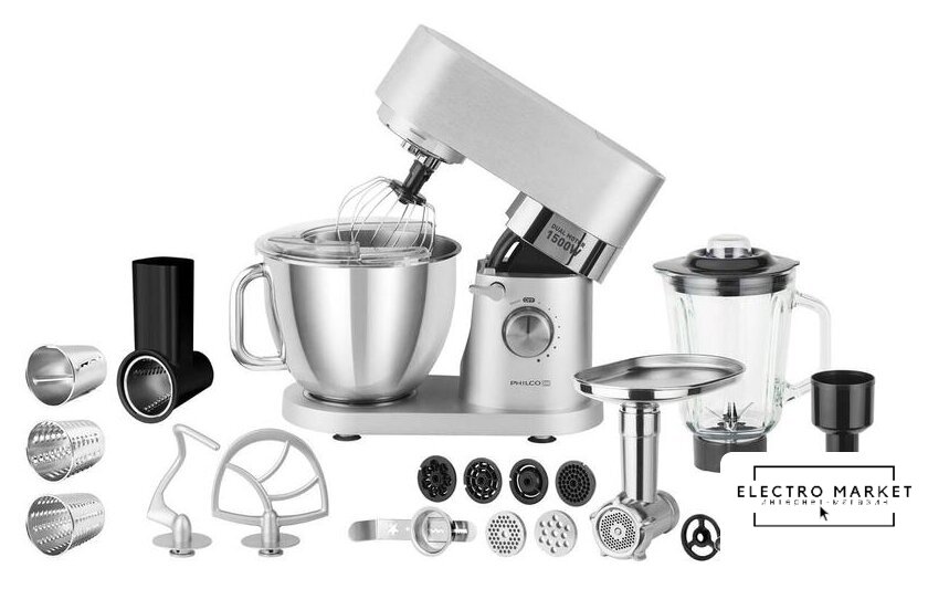1500 Вт, планетарное смешивание, объем чаши: 5.5 л, терки, мясорубка, блендер
