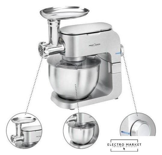 1300 Вт, планетарное смешивание, объем чаши: 5.2 л, мясорубка, блендер
