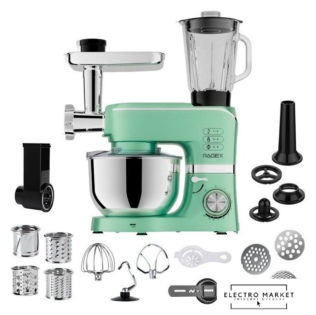 1300 Вт, планетарное смешивание, объем чаши: 5.5 л, мясорубка