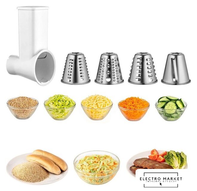 1200 Вт, объем чаши: 1.8 л, терки, измельчитель, блендер