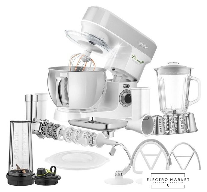 1200 Вт, планетарное смешивание, объем чаши: 5 л, терки, мясорубка, блендер