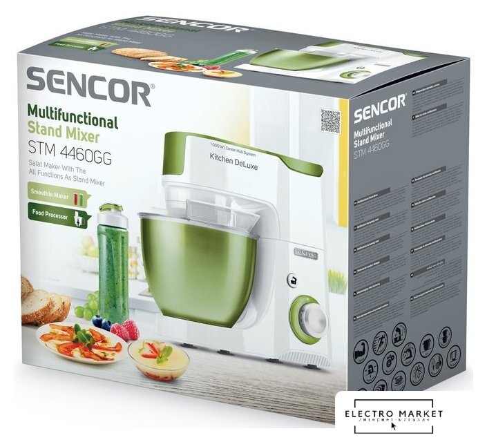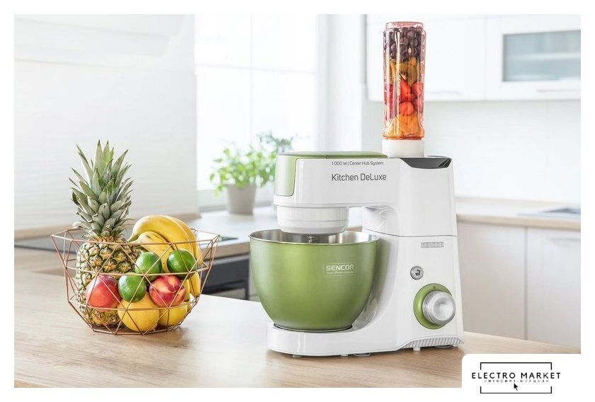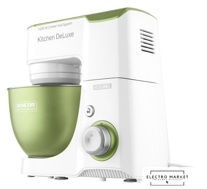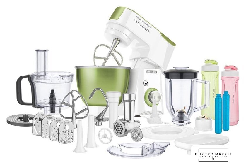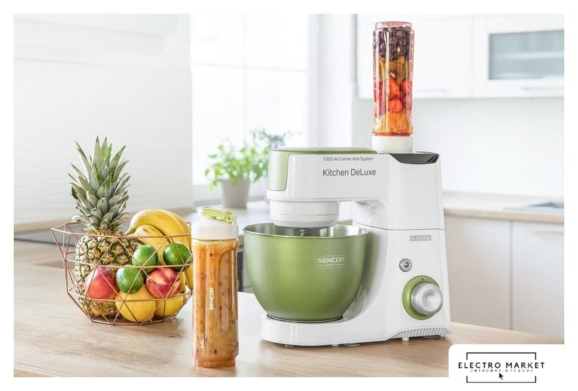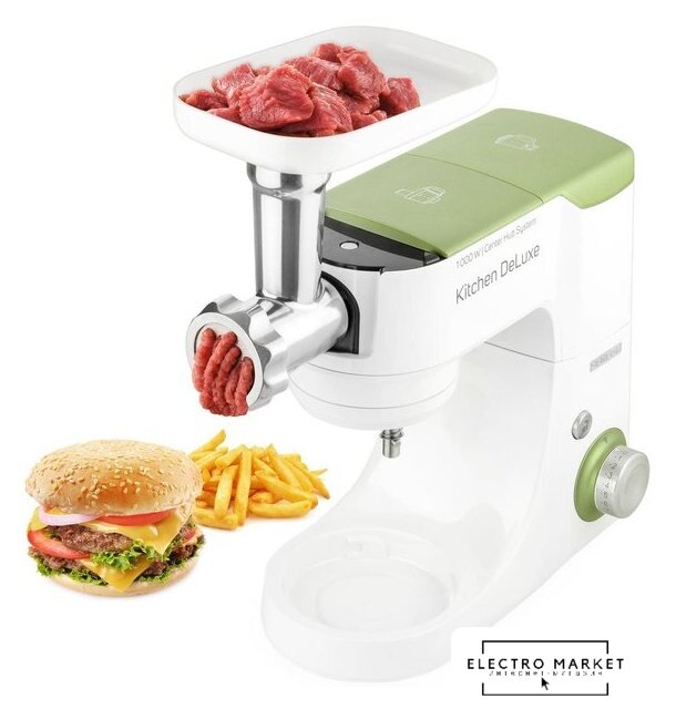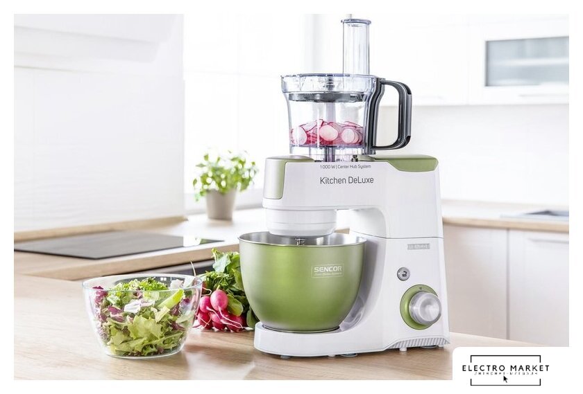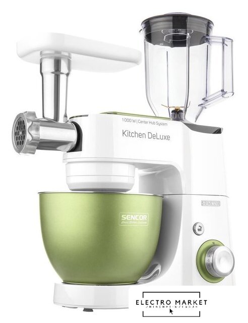 1000 Вт, планетарное смешивание, объем чаши: 4.3 л, терки, измельчитель, соковыжималка, блендер