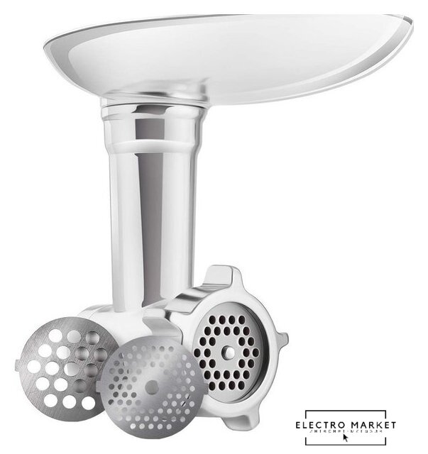 Полная комплектация | Чаша с ручкой: 4.5 л.Чаша без ручки: 3 л.Блендер: 1.5 л.Защитная прозрачная крышка чаши с отверстием для удобного добавления продуктов в процессе перемешивания.Пластмассовая крышка чаши, которую можно использовать как блюдо.Мясорубка: 3 решетки, насадка для колбасы, кеббе.3 насадки для замеса, взбивания и жидкого теста:- крюк для замеса; - насадка для смешивания в форме буквы А; - венчик для взбивания.Специальная гибкая насадка FLEXI для замеса мягкого теста.Формочка для печенья. |