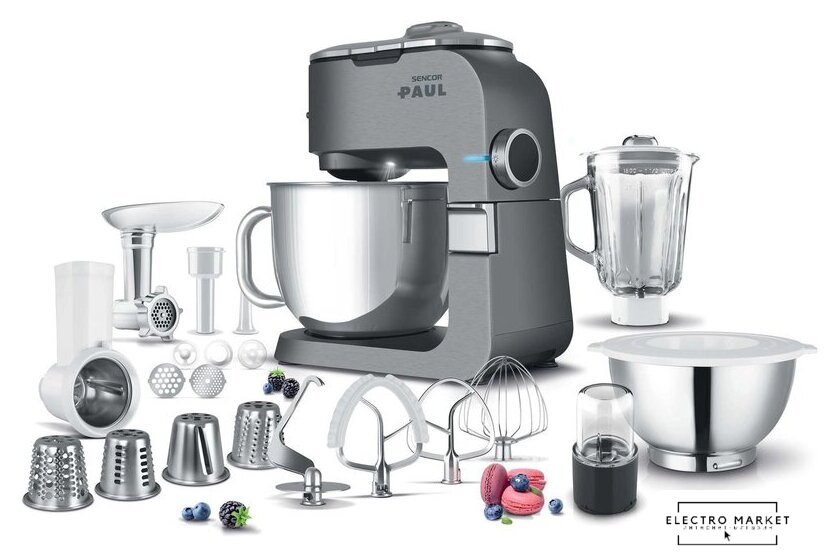 1500 Вт, планетарное смешивание, объем чаши: 5 л, терки, блендер