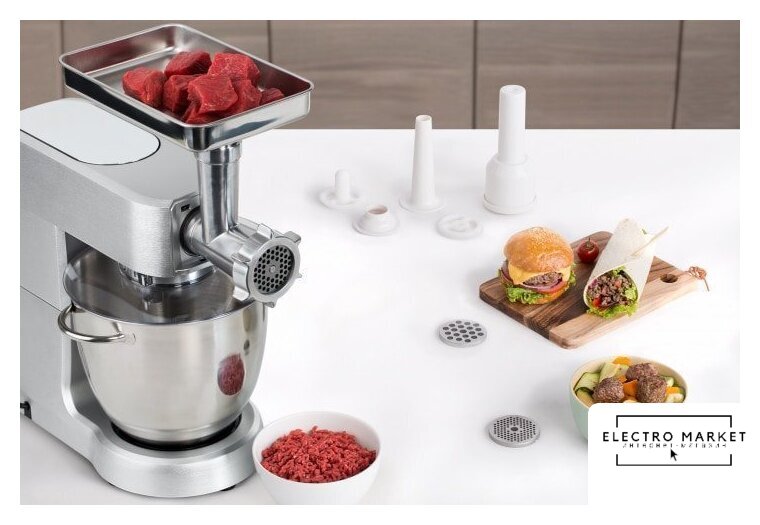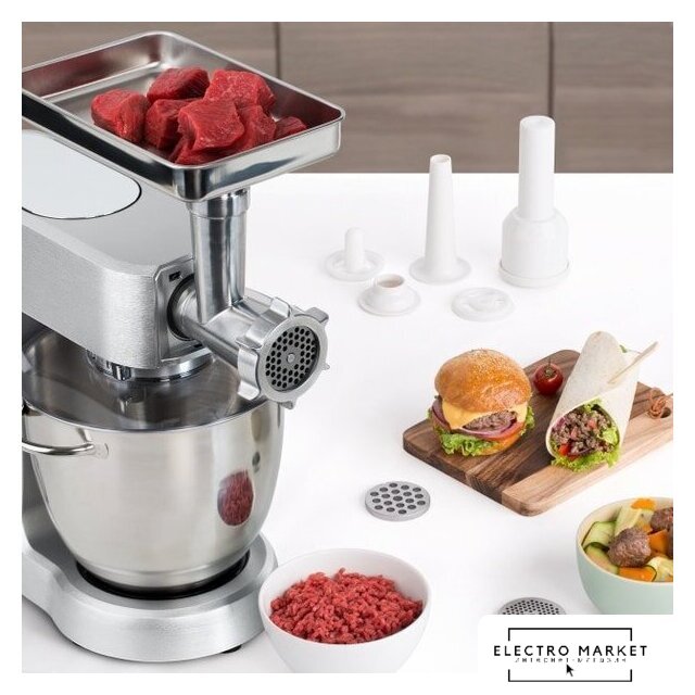 1500 Вт, планетарное смешивание, объем чаши: 5.5 л, терки, мясорубка, блендер