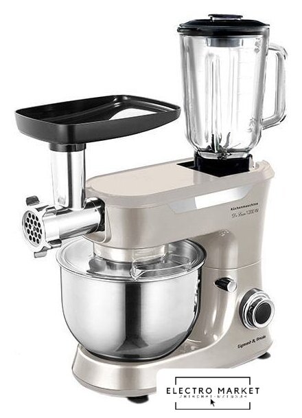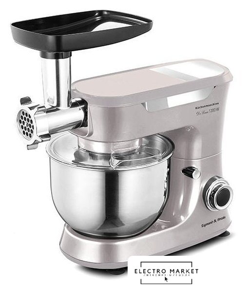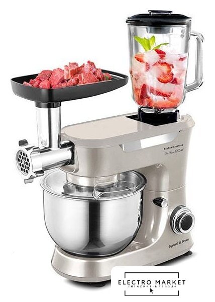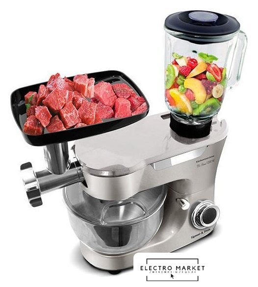 1200 Вт, планетарное смешивание, объем чаши: 5.5 л, терки, мясорубка, блендер