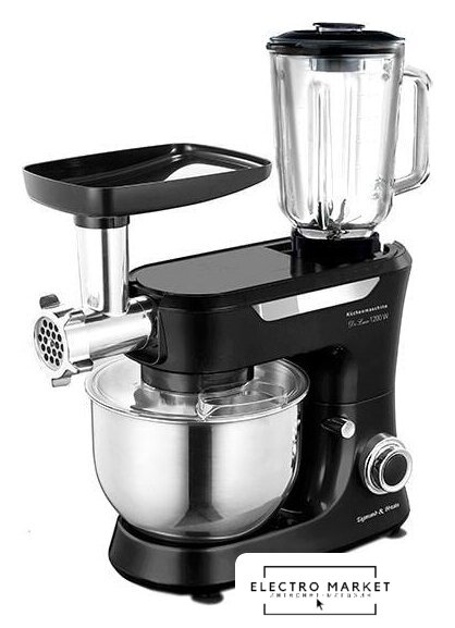 1200 Вт, планетарное смешивание, объем чаши: 5.5 л, терки, мясорубка, блендер