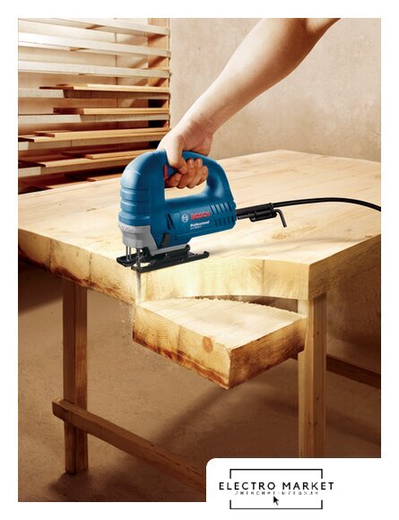 450 Вт, рукоятка-скоба, глубина пропила: 65 мм (дерево), 6 мм (сталь), 500–3100 ходов/мин, 1.8 кг