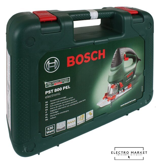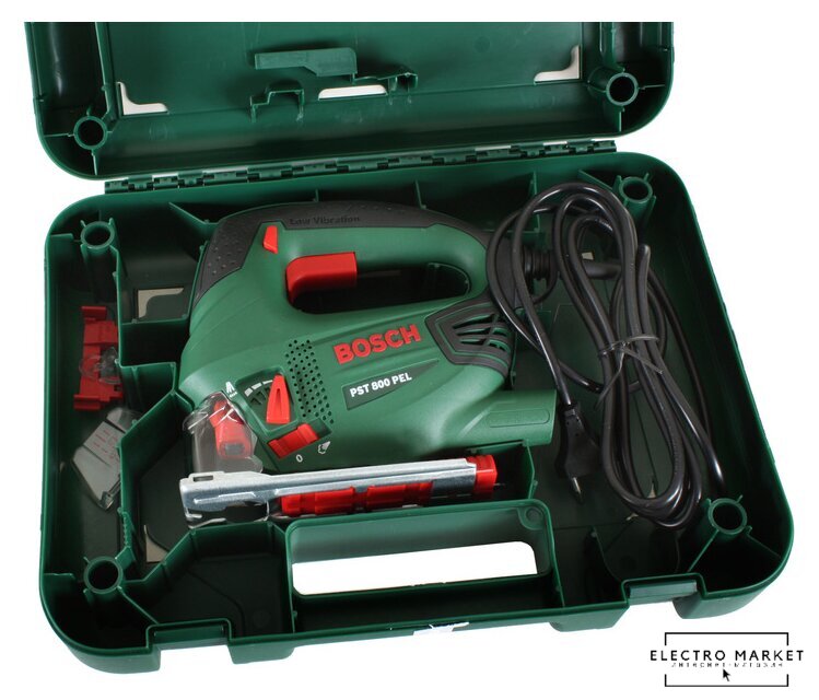рукоятка-скоба, питание: сеть, 700 Вт, глубина пропила: 100 мм (дерево), 10 мм (сталь), 3000 ходов/мин, ход пилки: 20 мм, 1.8 кг