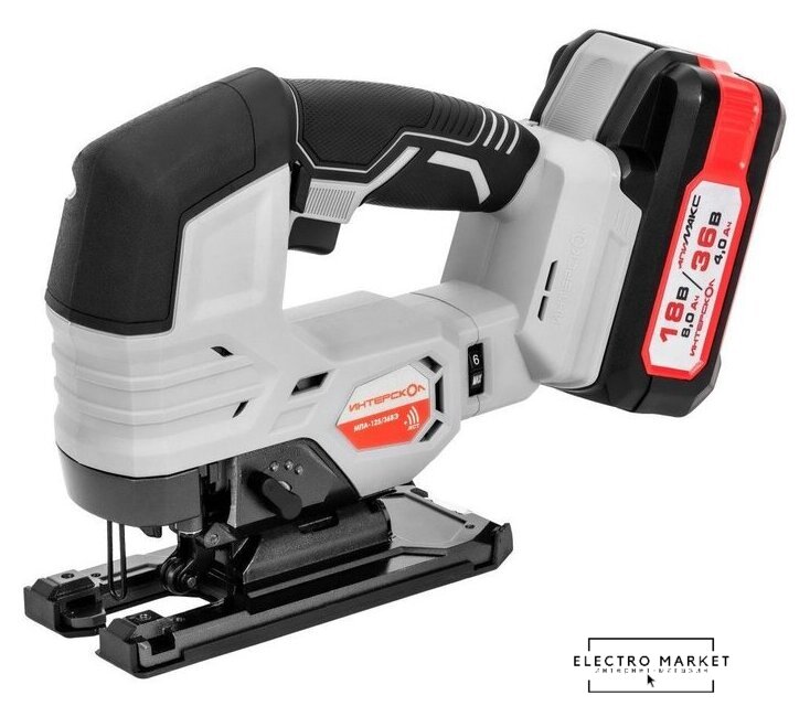 рукоятка-скоба, питание: аккумуляторный (18 В), аккумулятор в комплекте, глубина пропила: 80 мм (дерево), 5 мм (сталь), 0–2400 ходов/мин