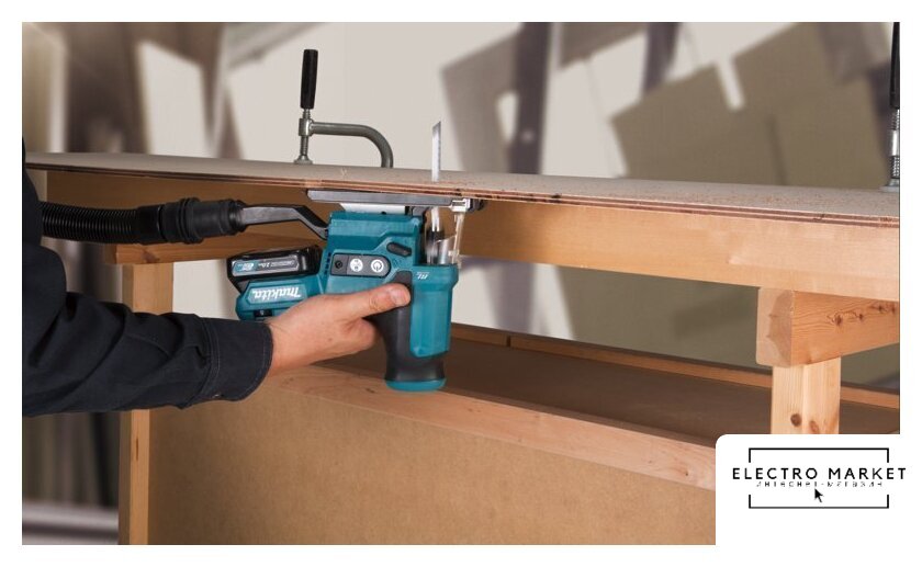 грибообразная рукоятка, питание: аккумулятор (18 В), без аккумулятора в комплекте, глубина пропила: 135 мм (дерево), 10 мм (сталь), 800–3000 ходов/мин, ход пилки: 23 мм, 2 кг