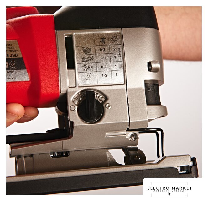 грибообразная рукоятка, глубина пропила: 100 мм (дерево), 10 мм (сталь), 800–3500 ходов/мин, ход пилки: 25 мм, 2.5 кг