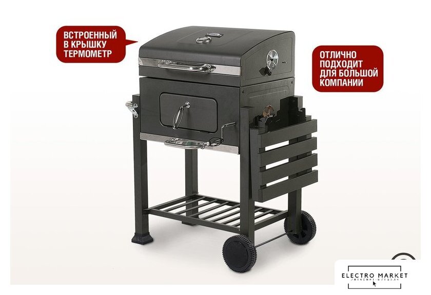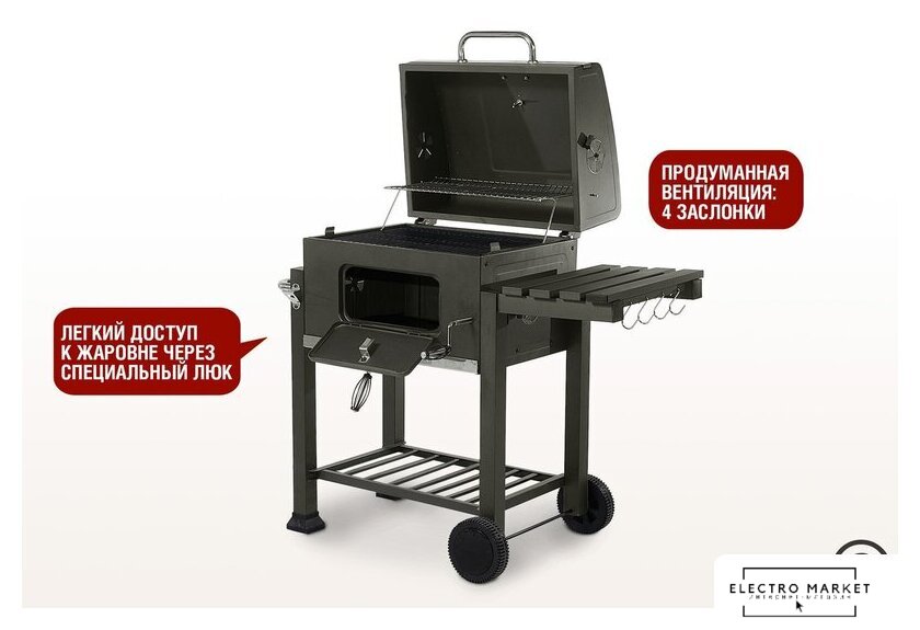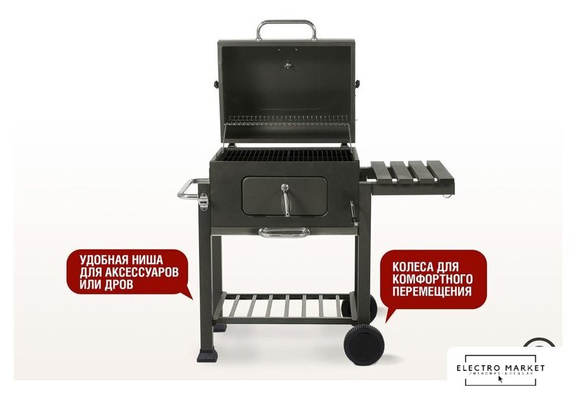 гриль-решетка, сталь, крышка, столики, полка для дров (принадлежностей), 69.5x111x116 см