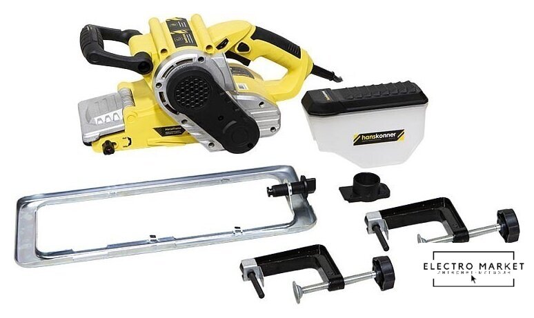 | Комплект поставки | - Пылесборник - Шлифовальная лента (установлена) - Запасной ремень - Шлифовальная рамка - Струбцины (2шт) - Адаптер для подключения пылесоса - Дополнительные угольные щетки (комплект, 2шт) - Инструкция по эксплуатации - Инструкция по безопасности |