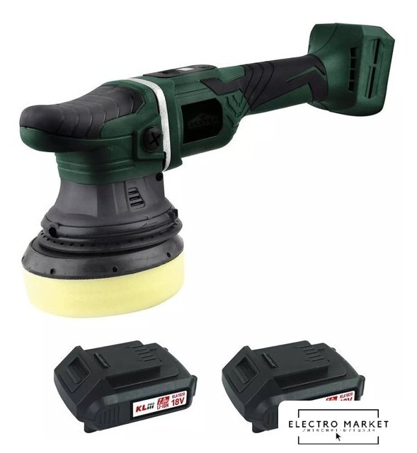 Комплект поставки | полировальная машина; 2 аккумулятора, зарядное устройство на 120 минут, 2 губки, чехол для переноски. |