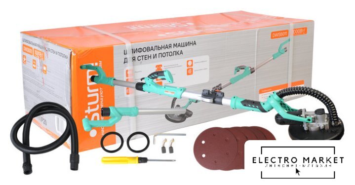 Комплект поставки | - Шлифовальная машина- Гибкий шланг- Шлифовальная бумага (6шт)- Шестигранный ключ- Двусторонняя отвертка- Уплотнительное кольцо- Сумка- Дополнительные угольные щетки (комплект, 2шт) |