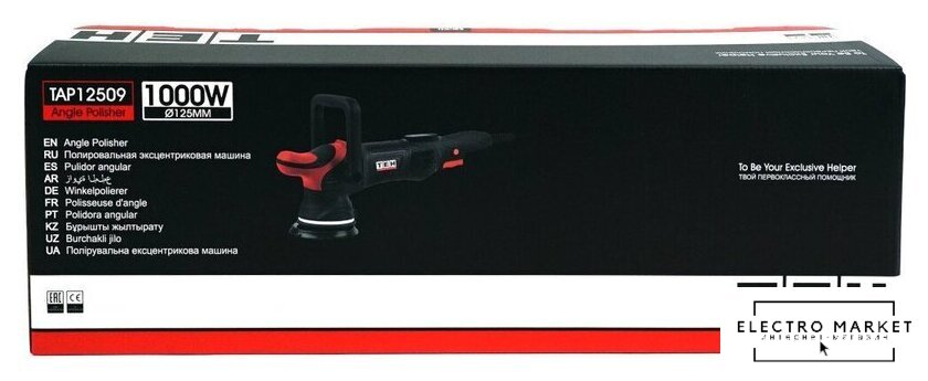 | Комплект поставки | Полировальная эксцентриковая машина;, - Дополнительная боковая рукоятка;, - Дополнительная D-образная рукоятка;, - Опорная тарелка;, - Полировальная насадка;, - Ключ HEX;, - Набор крепежа;, - Комплект угольных щеток;, - Руководство по эксплуатации;, - Упаковка (картонная коробка). |