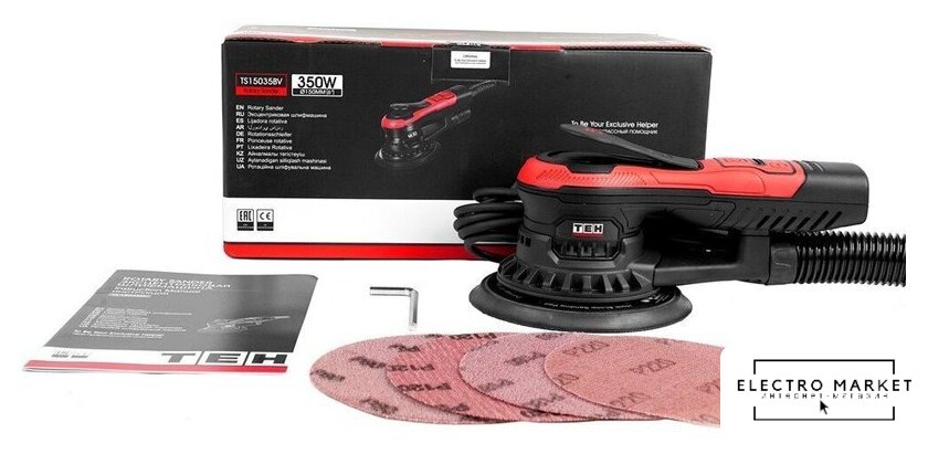 | Комплект поставки | - Эксцентриковая шлифмашина;, - Пылеотводной патрубок;, - Шлифовальный круг – 4 шт.;, - Руководство по эксплуатации;, - Упаковка (картонная коробка). |