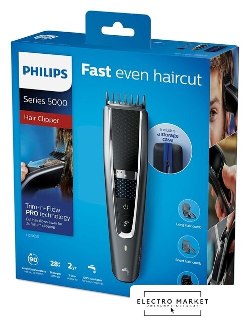 для прически, длина стрижки: 0.5–42 мм, питание от сети/от аккумулятора, автономная работа: 2 часа, не требует смазки