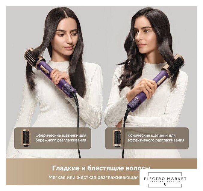1300 Вт, EC (BLDC) мотор, ионизация, термодатчик, независимая регулировка температуры, шнур 2.68 м, голубой/коричневый, кейс в комплекте