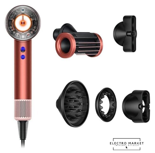1600 Вт, EC (BLDC) мотор, ионизация, термодатчик, независимая регулировка температуры, шнур 2.8 м, медный/серебристый