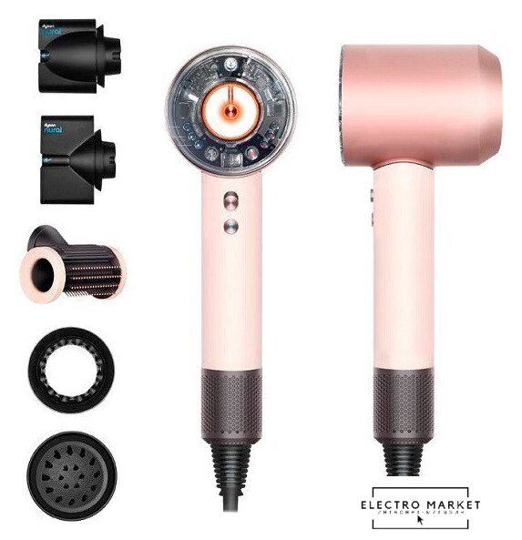 1600 Вт, EC (BLDC) мотор, ионизация, термодатчик, независимая регулировка температуры, шнур 2.8 м, медный/серебристый