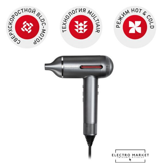 2200 Вт, ионизация, независимая регулировка температуры, шнур 2.2 м, серый