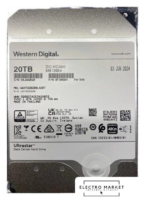 3.5", SATA 3.0 (6Gbps), 7200 об/мин, буфер 256 МБ, технология CMR, наполнение гелий