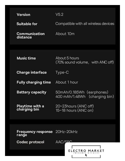 | Максимальное время работы | 5 ч (без использования ANC) |