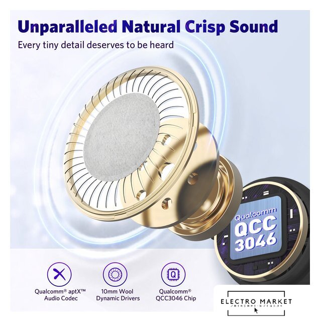 беспроводные наушники с микрофоном, внутриканальные, портативные/геймерские, полностью беспроводные (TWS), Bluetooth 5.3, 20-20000 Гц, быстрая зарядка, время работы 10 ч, с кейсом 40 ч, активное шумоподавление