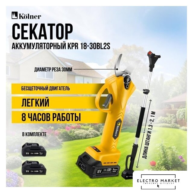 секатор, аккумуляторный двигатель, 20 В, без аккумулятора в комплекте, 1.2 кг