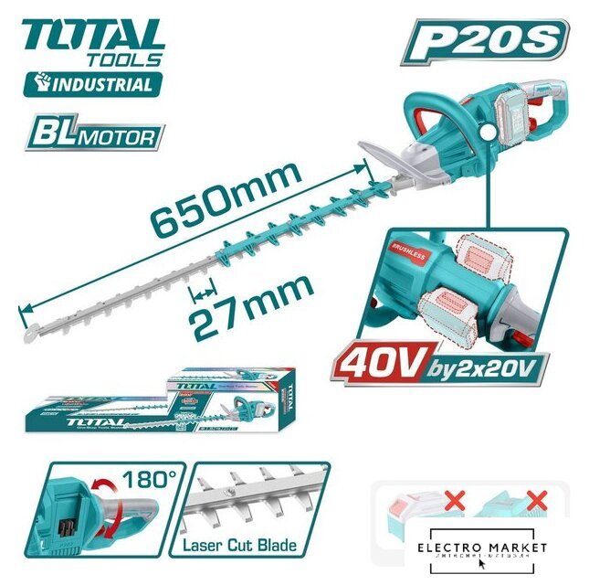 кусторез, электрический двигатель, 650 Вт, длина лезвия: 600 мм