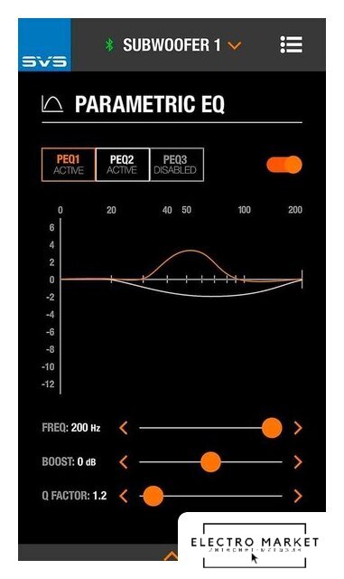 Управление акустикой | мобильное приложение, кнопки/регуляторы |